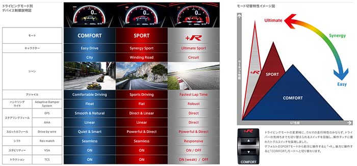 转向方面当你打开+R模式之后方向反馈就会非常的精准(对比起买菜模式),其实我比较愿意本田像德国车那样出一个个性化模式,细化调整... 比如我想要别的是买菜模式但是转向是+R模式什么的... 我觉得买菜模式下转向是有点虚。