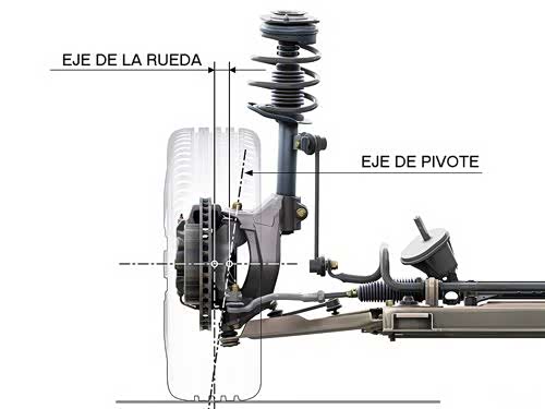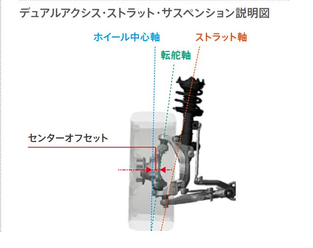 其实这种东西我也很难往简单的说,一般来讲转向轴和轮胎中心轴接触地面那一个平面之间有个间距,这个间距叫做主销移距(Scrub Radius)。一般这个距离代表着轮子转向的时候轮子是会跟着这个轨迹走的(像是在地面上走一个半圆一样),然后这个转向阻力矩和这个主销移距是成正比的,所谓移距越高阻力矩越大,越容易造成扭力转向。