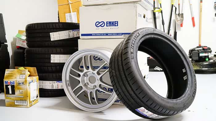 除了换机油之外我也买了套新轮子,用来下赛道用。