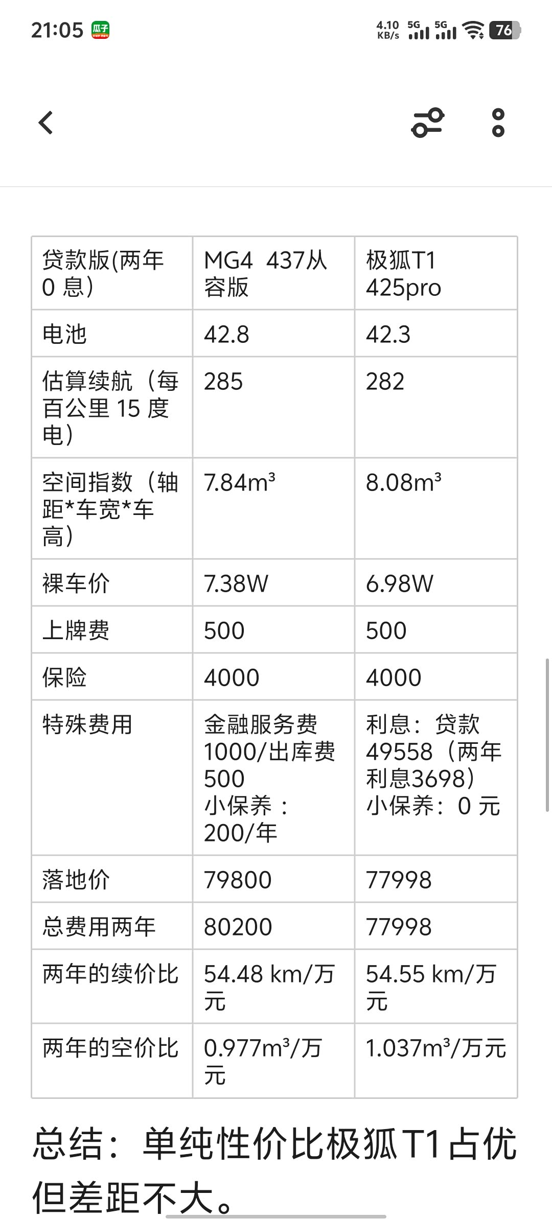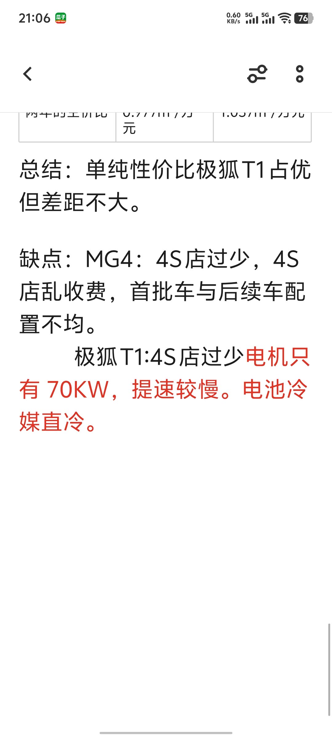 目前为止,mg4是性价比最高的七万左右的电车,也是最均衡的车子。t1就不要来碰瓷了
