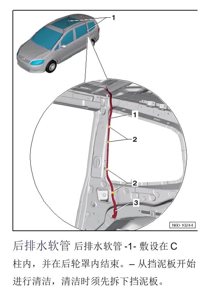 最后从天窗倒水检查。从轮拱内检查,看卡槽是否完全安装到位,看流水是否顺畅。