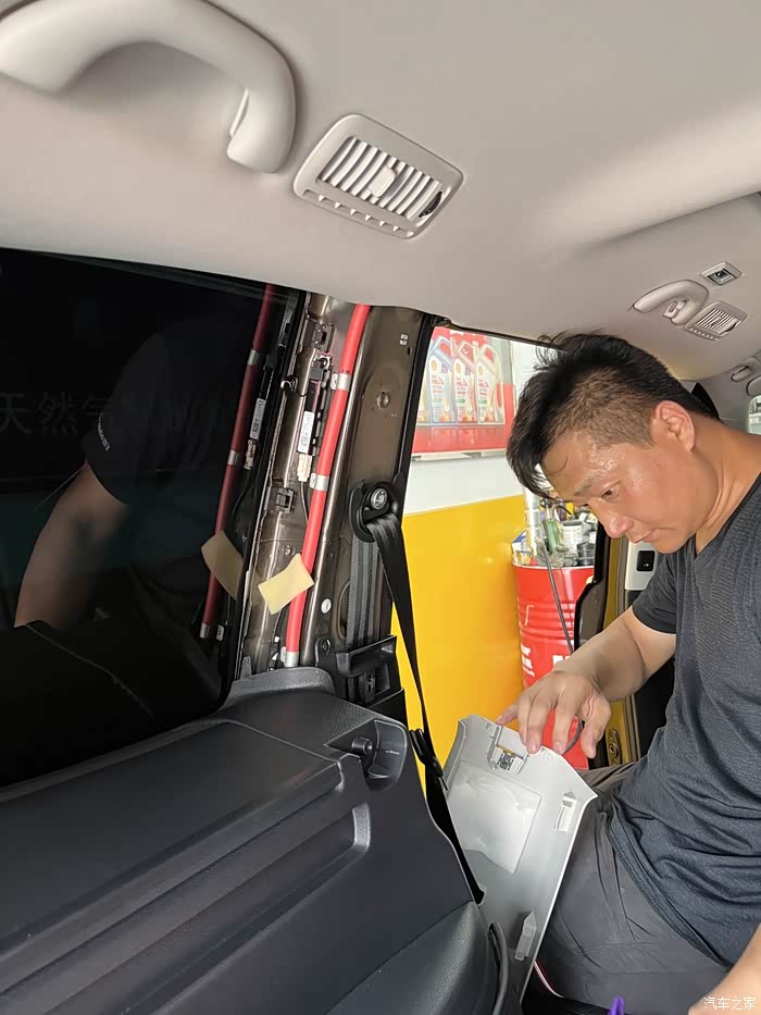右侧同左侧一样拆,接头处理好之后热缩,顺序装回,特别要注意,卡槽一定要卡到位,从轮拱内检查。
