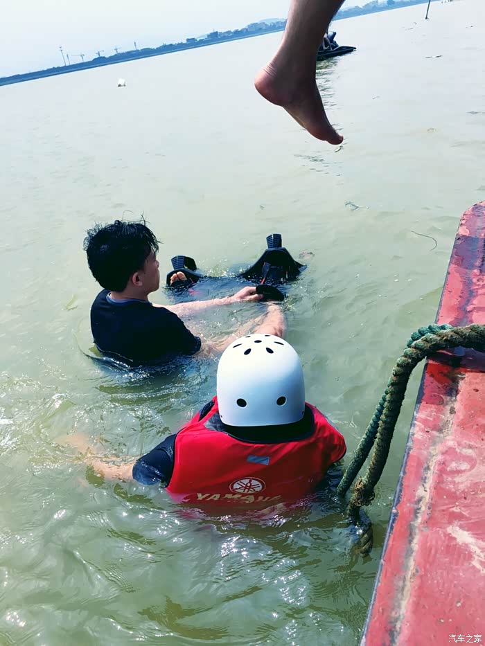 ...先在浅水区域在脚上穿好水上飞行器,救生衣和护具当然不能少......请忽视上方那只诡异的脚