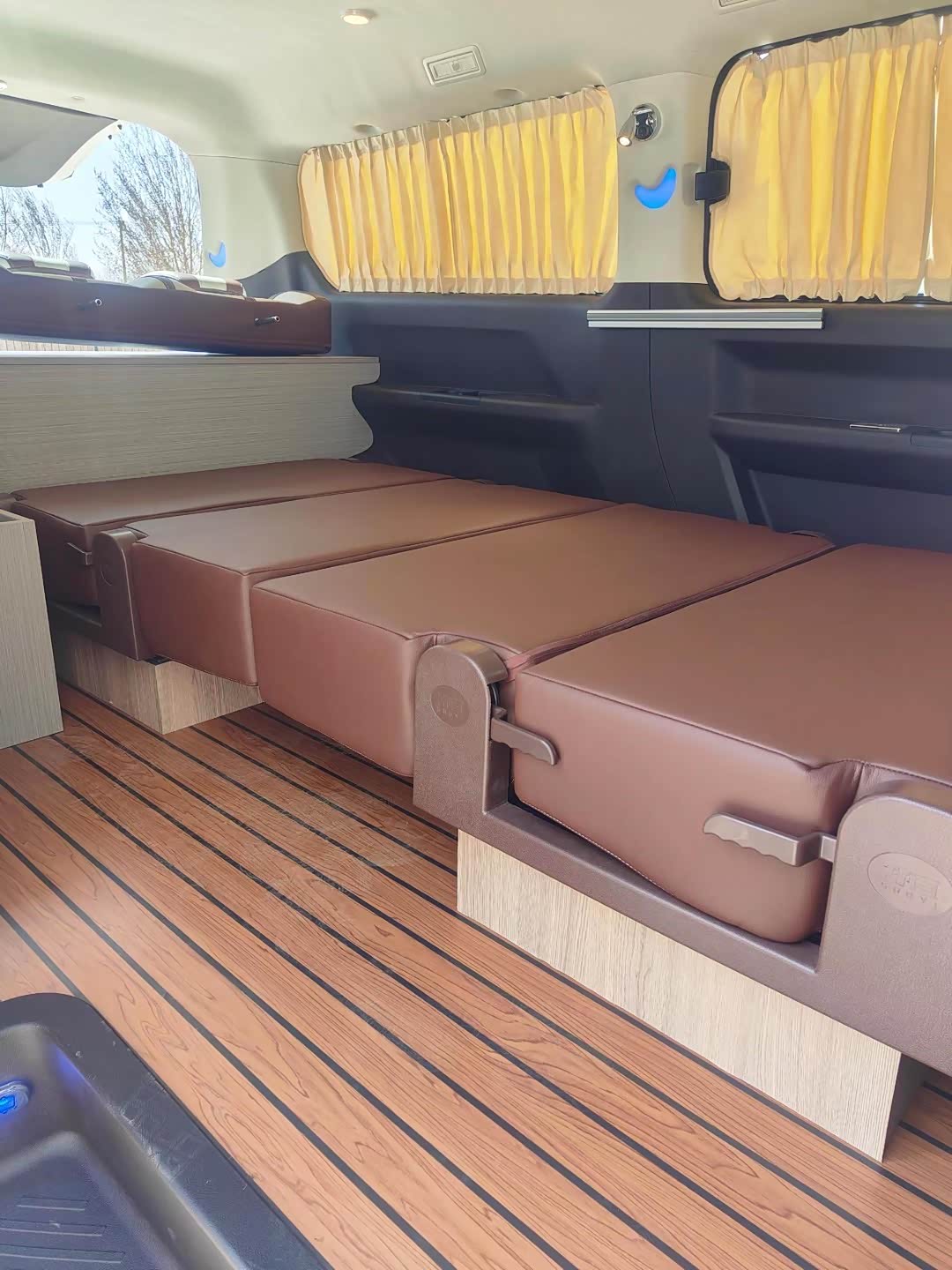1. 原车空间:车身尺寸大,后排座椅放倒后接近纯平,改装床车基础好。我加装了折叠床架(约1.8×1.2米),两人睡眠无压力,车顶行李架扩展了储物空间。