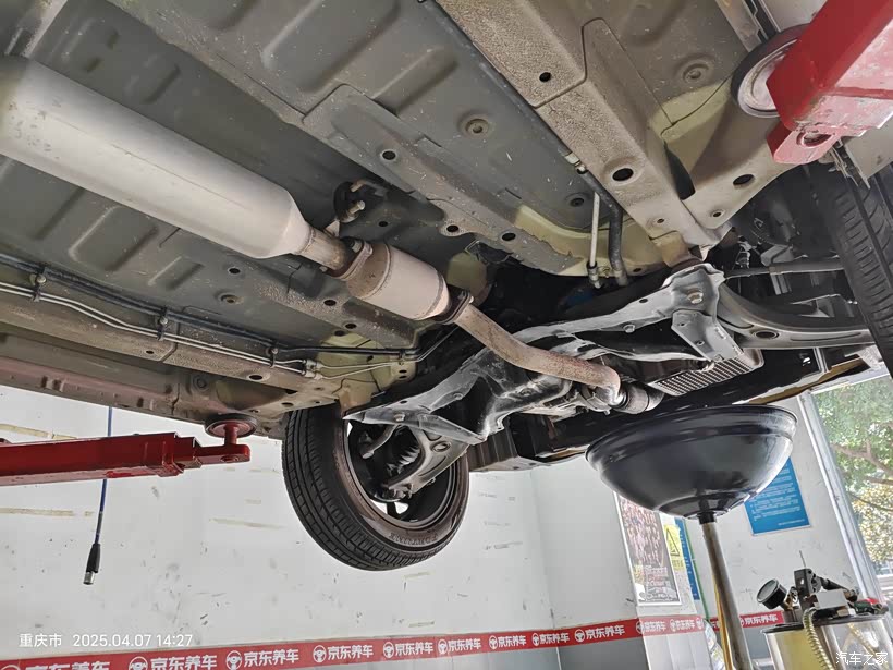 这次保养,顺便照了一下底盘的相片,一点都没有生锈的痕迹,大家看一下,马上就9年了,公里数65000多公里