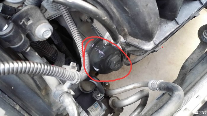之后是换机滤,这儿我哭了,只有活口扳手,借了女儿的蜡笔做标记,其间还软磨硬泡半天才答应给我用一下的,嘿嘿。真心讲,拆机滤盖子要用27MM的套口扳手,活口的也能卸,就是不太方便,卸得太累了。
