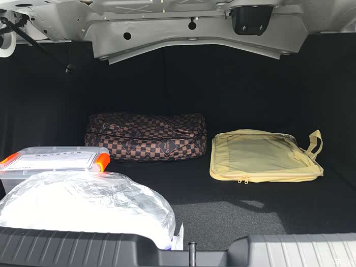 还没来得及给后备箱加个垫子,买车后去超市狂购了一次,满满的两大购物车东西,轻松装进了后备箱