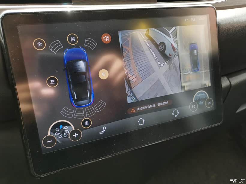 车子配置的这个大尺寸的液晶中控屏,非常好用,功能强大,就比如图中的这个倒车雷达功能,能帮助我进行倒车操作,倒车入库变得非常轻松。