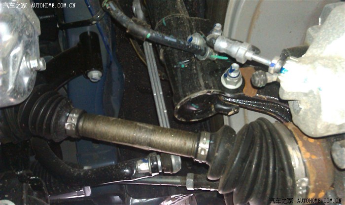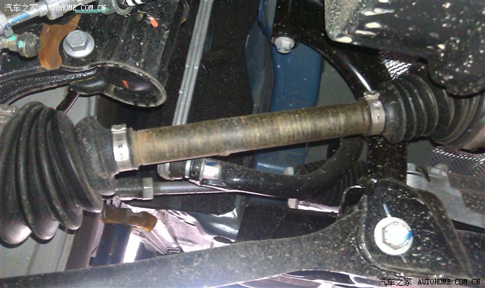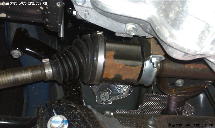 提车时候就很关注传动半轴锈渍的问题,发现半轴没锈,但是旁边的叫什么的锈了,大家看图!后备箱底板怎么感觉缝缝补补的?这里补一块,那里加一块的!