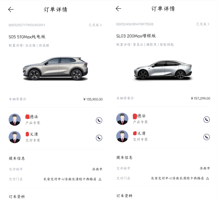 还是他,去年的销售小哥还在,热情周到,提前告诉了他,帮我推荐纯电车型。因为对SL03的认可和喜爱,一开始有再要台纯电SL03的想法,但两台外观一样的车少了些许新鲜感,所以选择了S05纯电版,因为开了深蓝,习惯了操作,考虑配置,电动门把手、电动尾门、HUD是必要而充分的,疲劳提示、旋转中控屏是充分非必要的,所以选择了510MAX版本。我的心理预期,纯电能跑400km就OK,这款车完全契合我所有的期待。