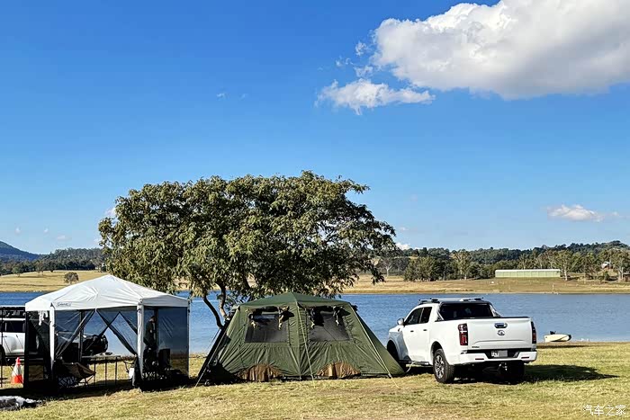 这两年露营在国内很流行,其实在澳大利亚也是一家人最喜欢也采用最多的一种周末假期休闲生活方式。一般出行的车辆多为硬派越野车或皮卡车,妹妹家去年购买了一台国内长城皮卡——炮,这台车主要作为工具车来使用,平时拉货比较多一些。柴油版2.0T+8AT总成还是动力不俗的,尤其是低扭更强。初秋的布里斯班近郊十分宁静开阔,来湖边度假露营的家庭也不少,夜晚温差比较大,清晨起来看日出还是挺冷的。
