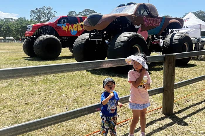 观看皮卡车改装的大脚怪车辆表演属实精彩绝伦,以前只在电视上看到过,现场观看表演格外刺激精彩,发动机巨大的轰鸣声不绝于耳。四个硕大无朋的车轮过任何障碍都是小菜一碟,把小外甥和小外甥女看的尖叫连连。