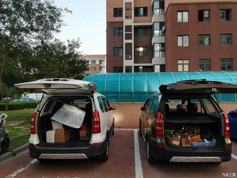 左边白色森雅用作家用出行代步, 右边橄榄棕色森雅用作上班时候工具车