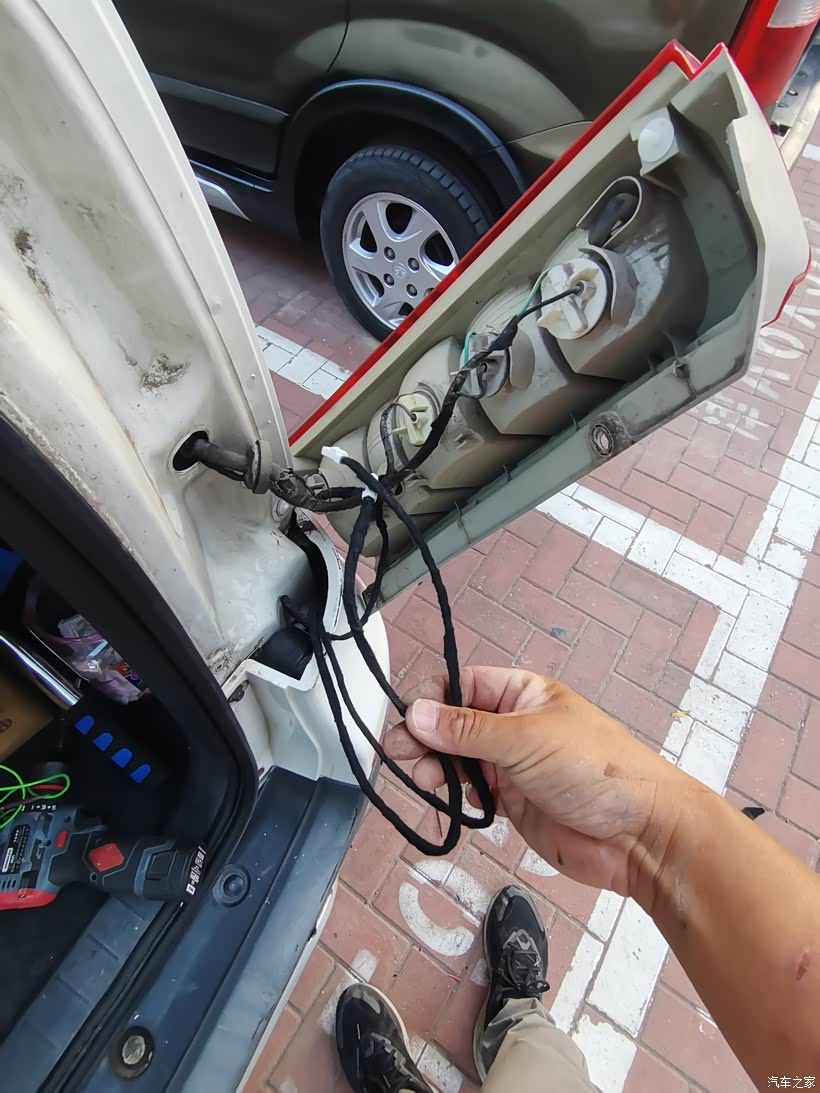 右后尾灯总成拆下来 从倒车灯取电,连接好两个鹰眼灯对插。