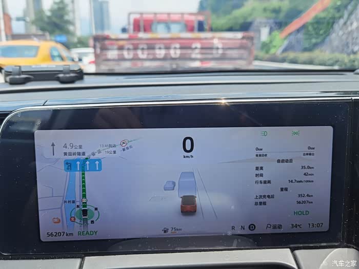 满电出发 ,市区行驶15.7公里后进入高速,续航剩余492开启自适应巡航+LCC,保持车速为120公里行驶50公里,