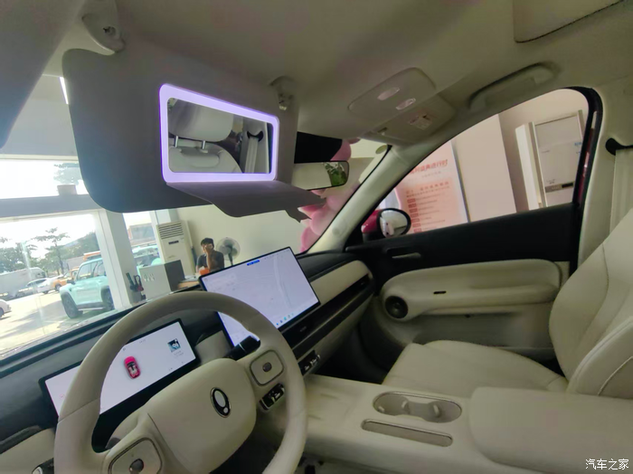 说说车吧,我觉得这车还行。上市前我就去店里看过实车,说实话,欧拉5看着挺大气的,虽然是紧凑型SUV,但配了18寸轮毂,中控屏也超过15寸,感觉挺舍得给配置。车漆颜色亮眼,里面那个带补光灯的化妆镜我也喜欢,一打开灯就自动亮,对我们女生来说真的很贴心。