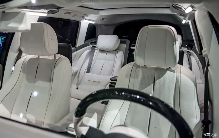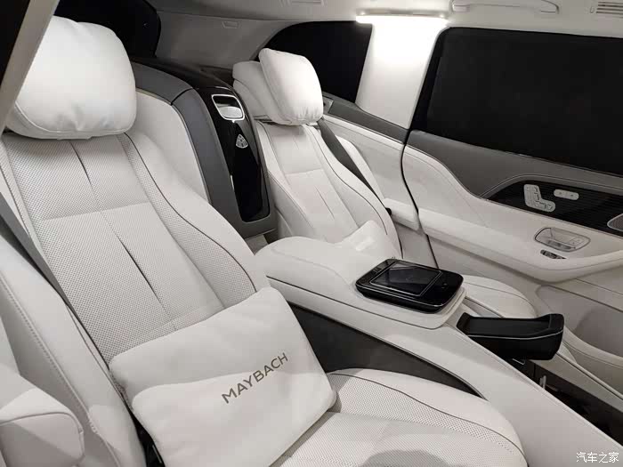 我认为这车的重点还在于内饰。前排及中控造型设计与普通版GLS几乎一模一样,不过这车的用料要更加考究,真皮实木以及Alcantara,怎么好怎么用。但这还不是重点,都知道GLS原先是个7座大型SUV,迈巴赫改为4座,腿部空间达到了1.34米,搭配最大调节角度133.5度的头等舱座椅,简直是要爽到飞起。车载冰箱,环绕音响,智能娱乐,香氛系统等等,奢华程度MAX。单看后排,俨然超越了添越和库里南。动力方面没用v12发动机有点遗憾,不过4.0T+9AT+48V轻混的动力总成,566马力和4.9秒破百也算是旗舰水准。