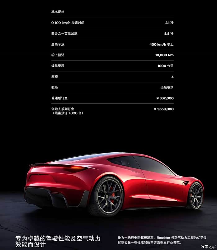 既然这么贵,咱看看性能参数咋样。动力系统为电动四驱,最大功率极为恐怖,达到了2000马力,(装上翅膀上天吧),最大扭矩1700牛.米,0-100KM低于3秒,具体没有公布,人家特斯拉已经做到1.9秒了啊,还便宜。最高时速320KM/h。这倒也意料之中。400公里的续航里程虽然现在看来不太行,但买这车的土豪们车库肯定一堆车,谁会开着它到处跑啊。