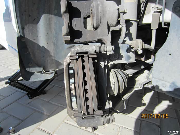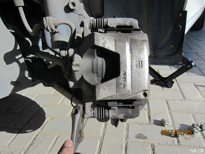 2月5日,也就是正月初九,上班后的第一个休息日我在洗完车之后开始自己更换刹车片,从论坛中看了看,其实也没什么困难的地方,另外准备一个活口扳手就可以了,其他工具都用车上自带的