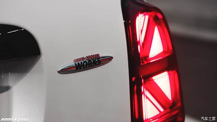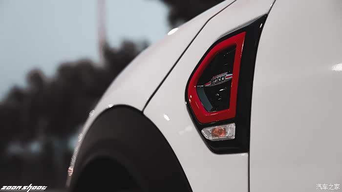 这台JCW的外观改动并不多,不过耸立在进气格栅上的两颗拉力灯却是最耀眼的那一颗星。来自上世纪60年代的传统一直流传到了今天,让这台属于城市和公路的SUV多了一丝野性。 车主后改的2021款尾灯显得威风十足,米字旗在尾灯内的运用.让整个车尾都有了一丝灵气,不再单调和沉闷。