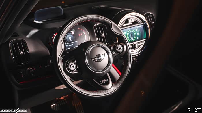无处不在的JOHN COOPER WORKS的标识不断提醒着观众:“我可不是好惹的!”B48TU发动机配合爱信8AT变速箱可产生出轮上272Ps和450Nm的动力,配合All4四驱系统,可以在5.7秒内将这位重达1.7吨的壮汉推到100km/h。