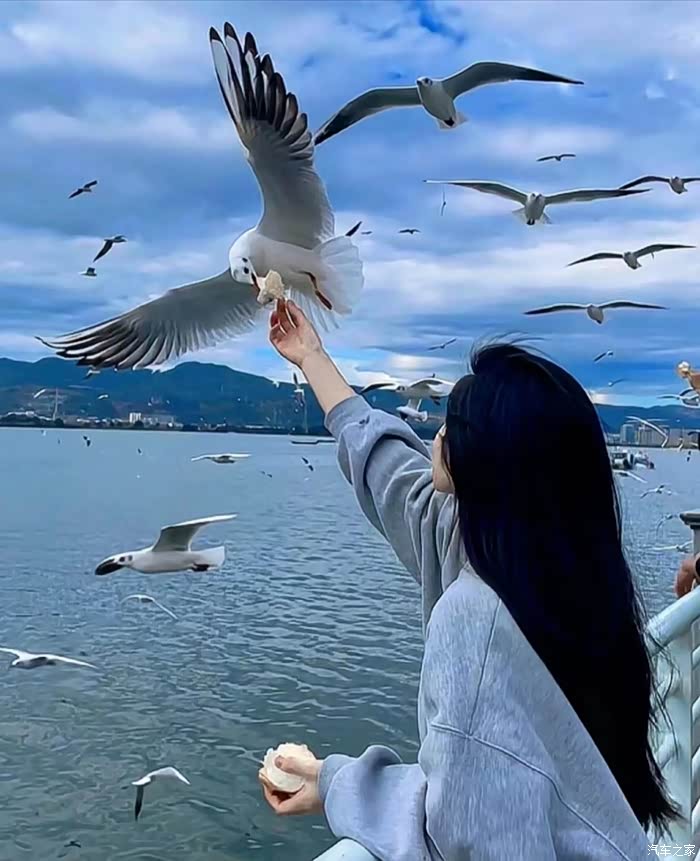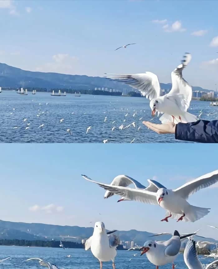 滇池大坝,遮天蔽日的海鸥从头顶飞过,这些可爱的小精灵们,漫天飞舞,如果你手里有鸥粮,它们还会飞下来在你手里啄食,太美了,不知此情此景,究竟是人与鸥谁正在逗趣谁?