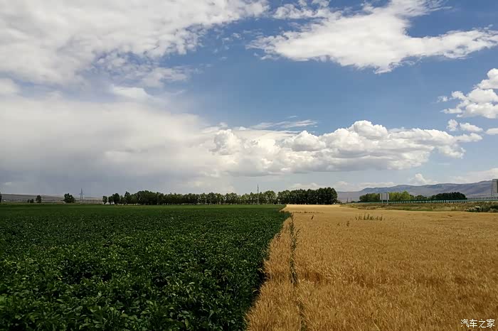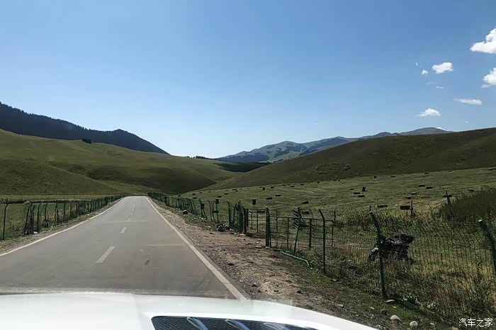 由于昭苏县正北的伊昭公路有施工路段,所以这次也要先往城东方向后再向北沿昭苏县种马场那条路经小洪纳海水库小绕一下才能真正踏上伊昭公路。因手机电池衰减的太厉害时不时的就自动关机所以这段路照片不多(后续行程的拍照是一直用充电宝供电坚持着)。
