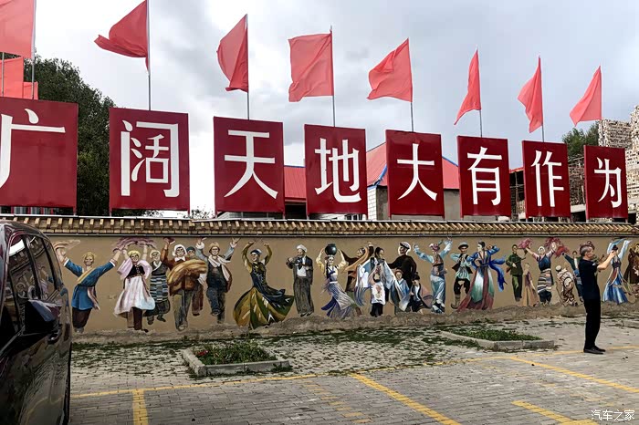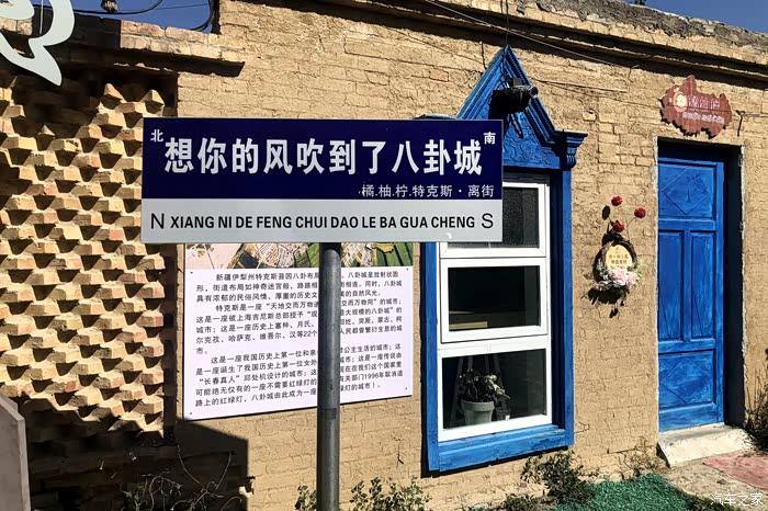 24号,由特克斯太极眼摩天轮景区停车场驱车去八卦城内城内转转。路口没有红路灯,兜兜转转的约12:00来到了网红街“离街”。这条街路两边想找个不算违停的位置还真不容易,游览区域内多数处于闭门锁户状态比较安静没有想象中的那么热闹,是来的时候不对?