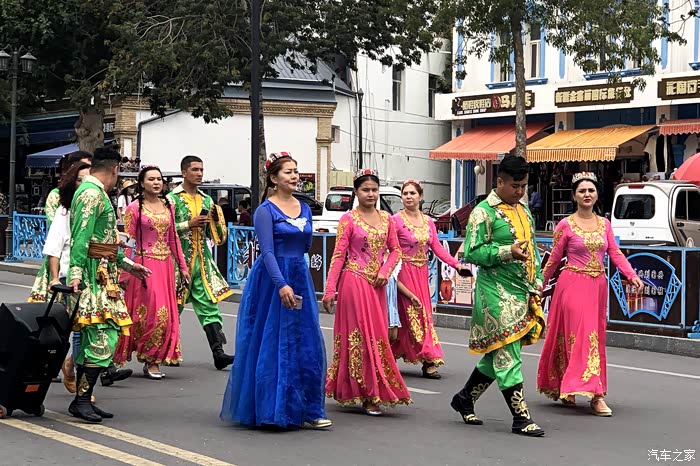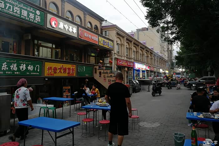 市内逛了逛也没找到什么前苏联风格的老建筑,林则徐纪念馆也闭馆了,丝路之光小镇的夜景时间又还早,周边也没找到合适驻车的位置,于是又回到了察县的营地驻车。然后步行去青年街逛逛。