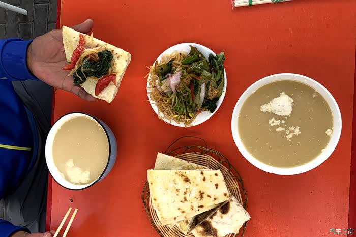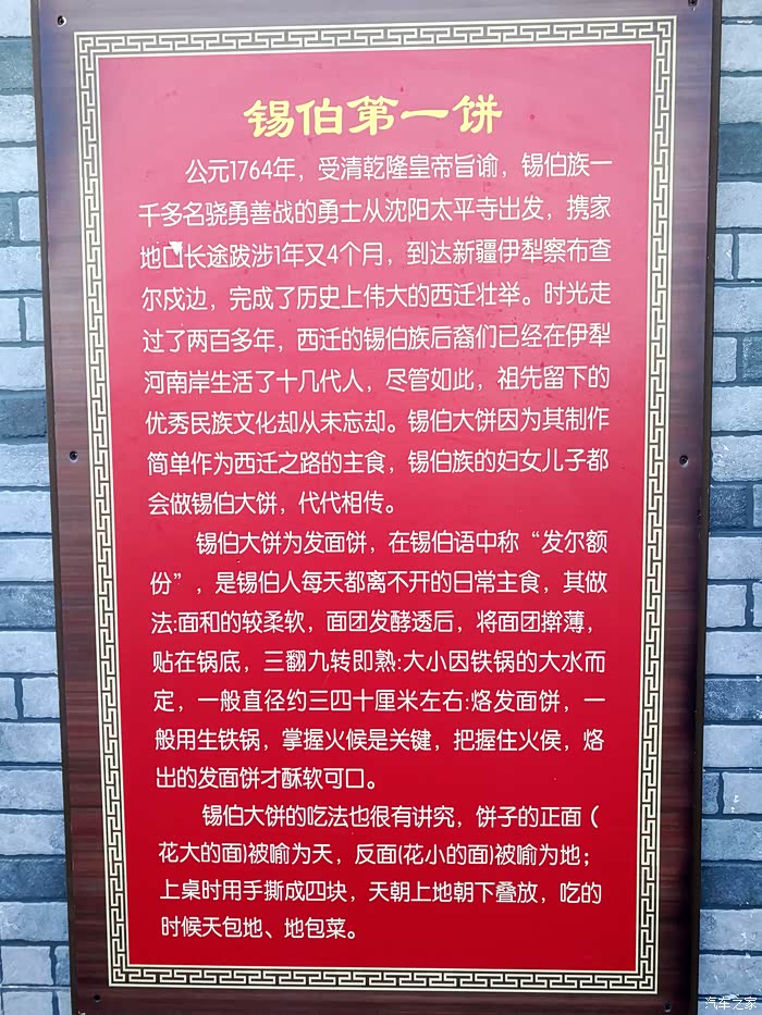 26号一早,经询问来到了察县餐饮一条街的青年街品尝了一次锡伯族风味美食锡伯大饼后去往伊宁市。