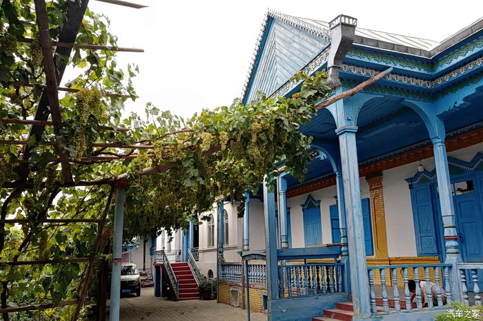 喀赞其是伊宁市的老城区,居民多半是维吾尔族人。是伊犁当地的老城,它的地位就和喀什的老城是一样的。热情好客的维吾尔族人热爱蓝色、粉色、白色等美丽的色彩。蓝色,是他们几百年来建造房屋的主色调,所以蓝色也是这个喀赞其的主色。在这个区域80%的建筑都比较好的保留了维吾尔族建筑的传统风貌与格局,街巷两侧有多处保存完好的百年民居。