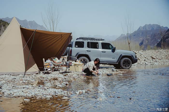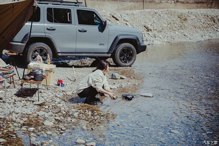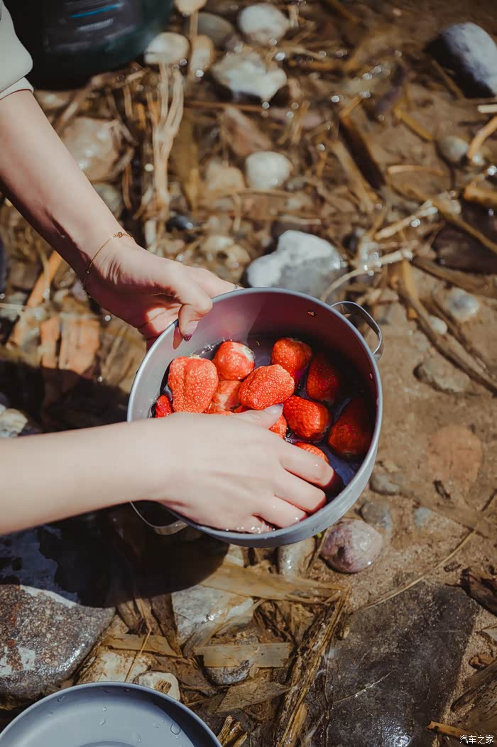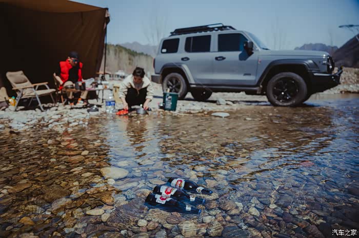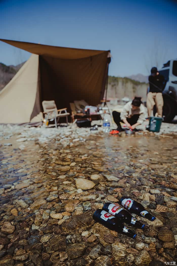 靠近水源露营的好处就是生活用水不用发愁,冰凉和河水还能冰镇啤酒!