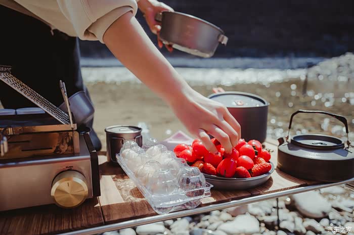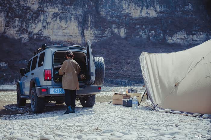 在选定了营地之后,我和小伙伴们就开始各司其职,卸车的卸车,搭帐篷的搭帐篷。必须得赶在天黑前吃上晚餐!