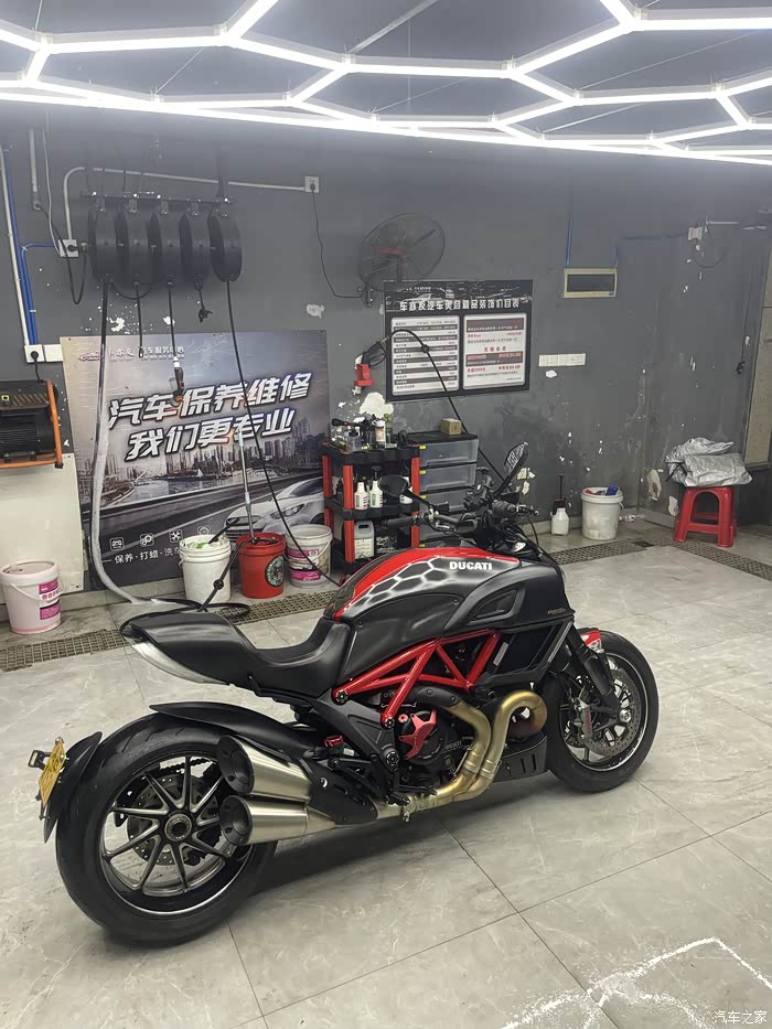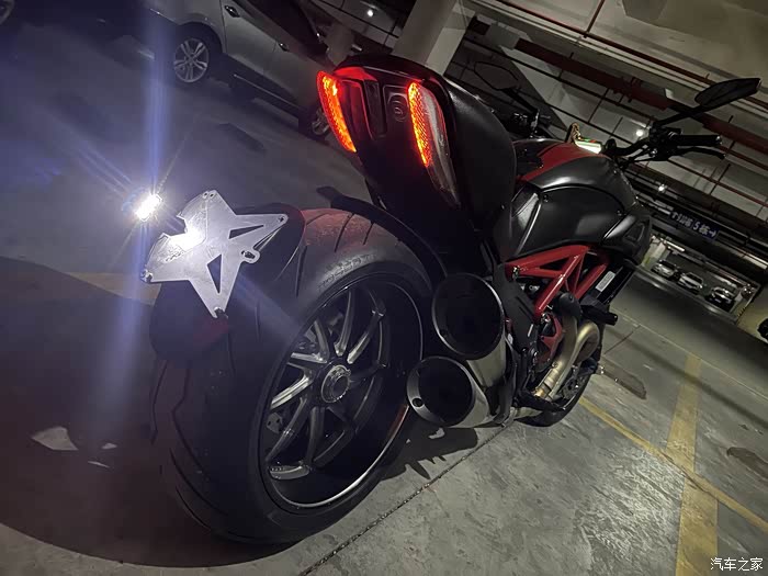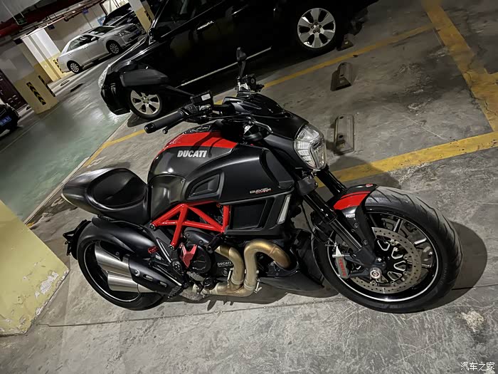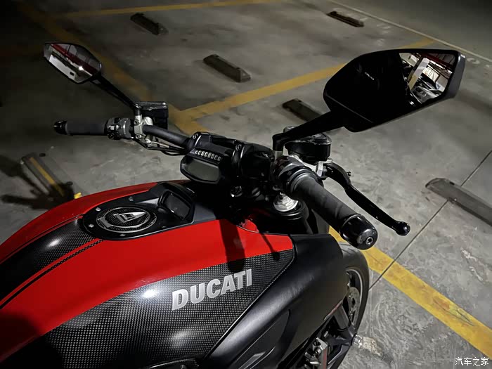 杜卡迪的车声浪都不怎么好听,V4稍微好一点, 大双缸的声浪是真不习惯,打鼓声咚咚咚还仿佛夹杂一些嘈杂的异响一样,但是高转跑起来速度了又是另一番销魂,车子早晨拉走了,拥有了一年多圆了曾经的梦也体验了这辆车的乐趣,要找下一辆公升了,日系四缸水冷。 因为师傅今早就来接车,晚上睡不着下去再喵了几眼这老伙计,拍几张照片跟车友们交流。