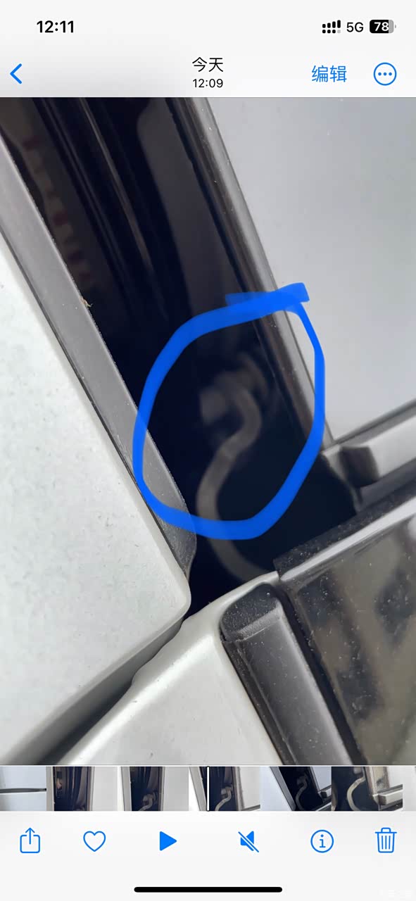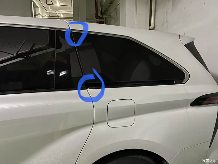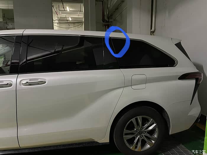 ②电动中门彻底打开后,就是下图的位置,低头喵进去 上滑轮那里跟门框接触的位置已经掉漆了,不知道是不是因为滑轮跟那里摩擦力太大了,导致掉漆,不知道4s店能不能修复,还是这个都是电动中门的通病?大家不妨去看看你们的会不会这样?