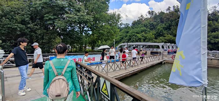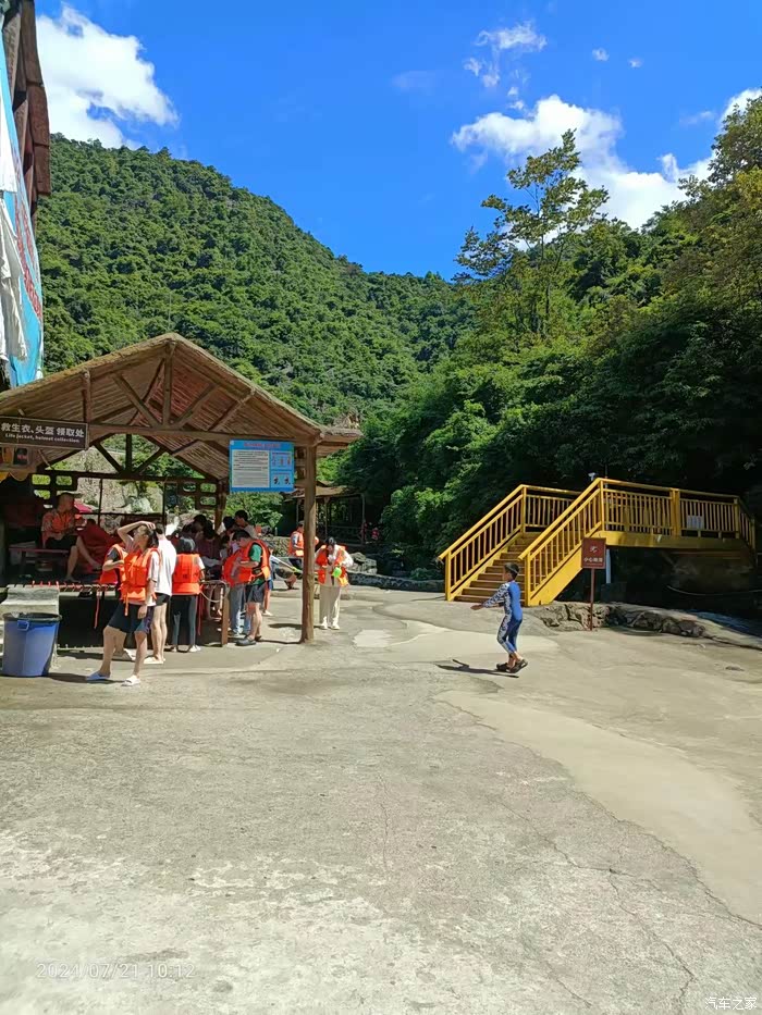 (温馨提示:记住 一切用品可先放车上,准备防水袋和包就好。个人觉得不需要购储物箱,因为漂完流后再去会自己车拿换洗衣服,也是很方便的。这漂流如果是网上购票,需要带上手机出示二维码检票,故必需带上手机(记得做好防水),上摆渡车前检票一次,到了漂流入口又要再检票一次)