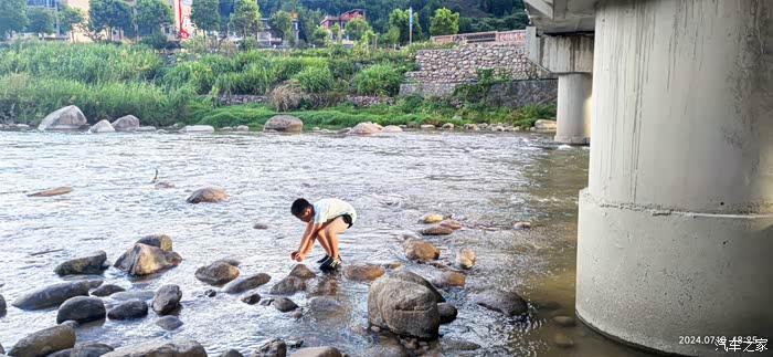 入住后发现附近有溪水可以玩水,小朋友就立马精神了