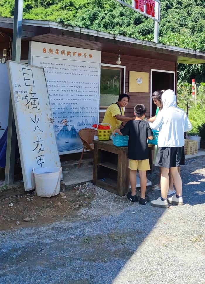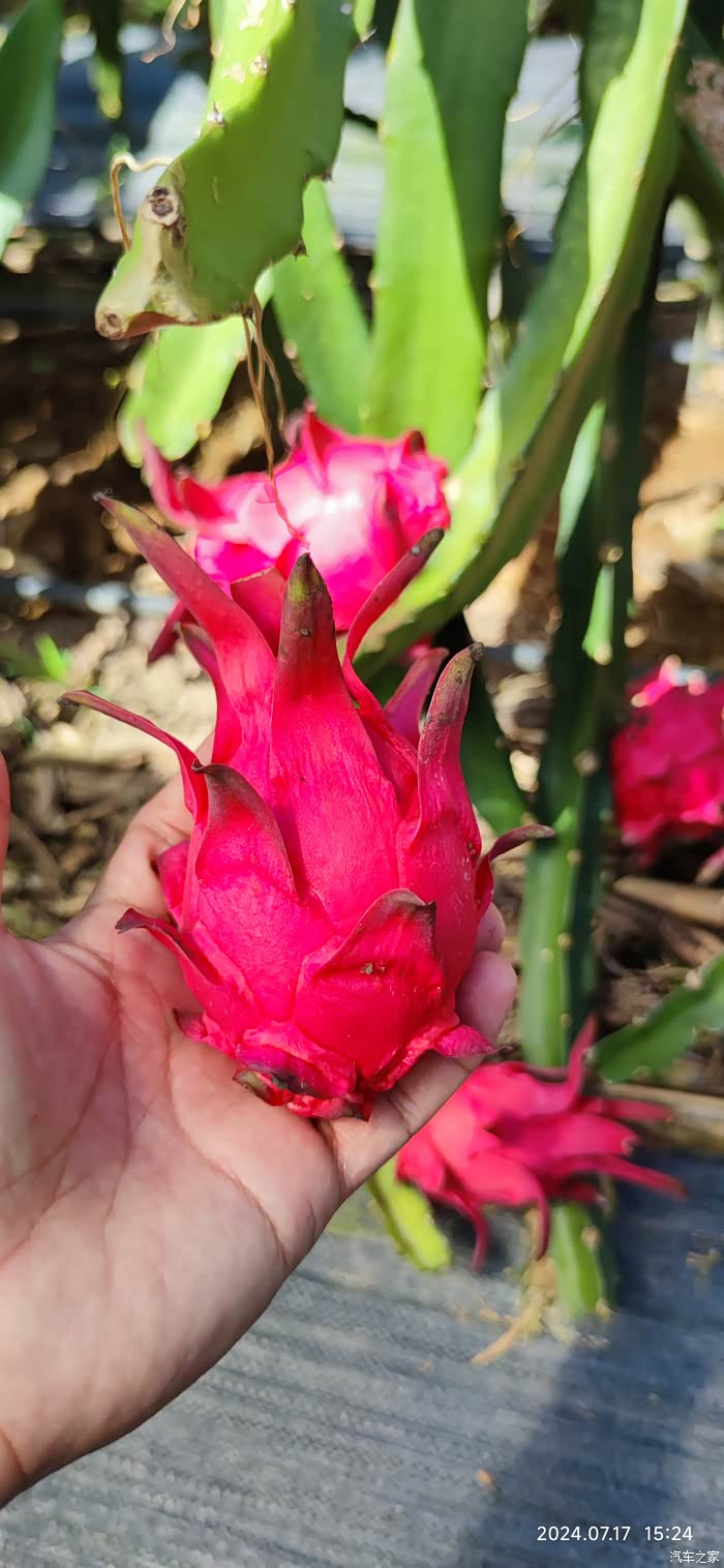 ,看着时间就出发去今晚的住处,在路上发现一处火龙果自摘的,就带上小朋友开心一下