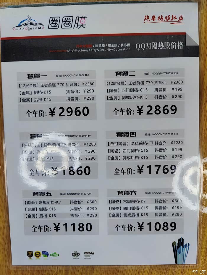 等到9:00人家才来上班,来了之后就准备开始贴膜了,要了最好的膜,而且主驾和副驾我也贴了前挡膜,因为这样透光性好一些。还加了一些钱,一共3000多。