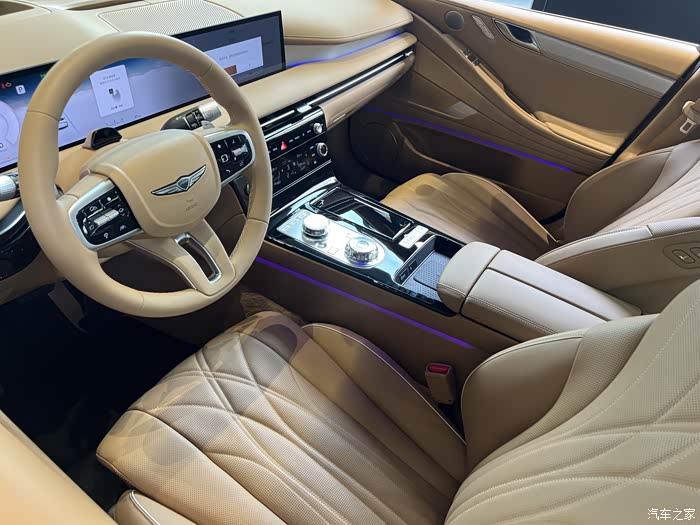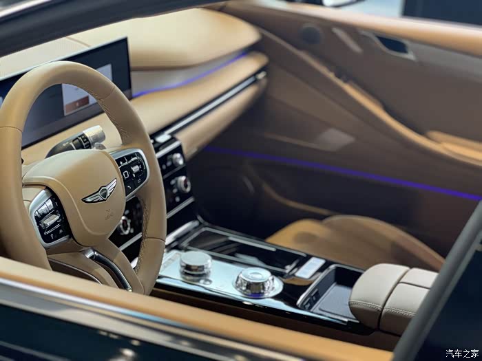 当时我们去看车,正好店内有新款的实车,伙伴带我们每台去看了下,老婆一眼相中塔斯曼蓝那款,有一说一,捷尼赛思是懂审美的,光这个电子旋钮档,我就晓得,是我老婆喜欢的款!女士喜欢带宝石,现在一些顶级豪车也都会在车辆设计里添加宝石元素,这种设计确实也提升了车内的豪华氛围, 换挡也有仪式感。
