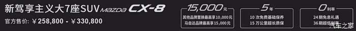 在后期保养上,CX-8具有15万公里质保,10次免费基础保养,需要注意的是10次免费保养只包含机油、机油滤和工时,只是空气滤、空调滤之类的不算在内,但是即使这样也算省了一笔钱了。