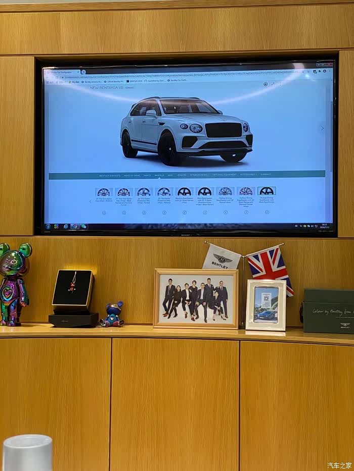这事之后又把大G搁置了,正好新款的宾利添越也准备上市,就等着看看再说吧。之后也辗转去4S店看了新款G500,试驾了一下,感觉还是可以接受的,但一问订车多久到,意思就是谁加钱多谁就快,那毕竟家庭条件不予许啊,就放弃了。家里的母老虎一直说加那么多钱买台奔驰,买个宾利他不香吗?细想确实也是道理啊,于是又去看宾利了。当时是7月份去的,也是没有现车可以看,就只有图片和想象。我们当时也是选了白色红内,是情结也是解恨吧。最后选配下来也不少啊,下地也要360万左右了。果然美丽的东西都是用钞票堆出来的啊。有点超预算了还是打道回府吧。