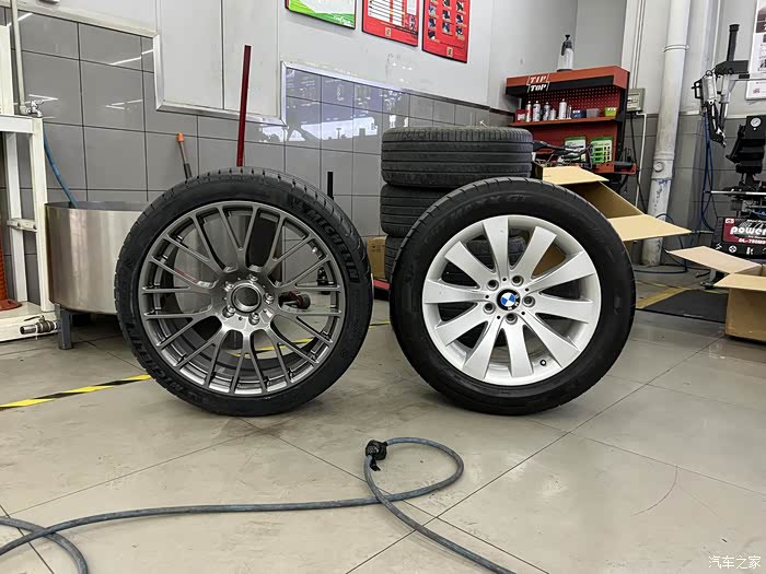 索性直接换了套20寸锻造轮毂,外加一套米其林PS4S轮胎,没有上防爆,选的普通胎,防爆胎就是鸡肋还硬,要操控还是普通胎舒服。这是前后对比,是不是瞬间就灵动了.