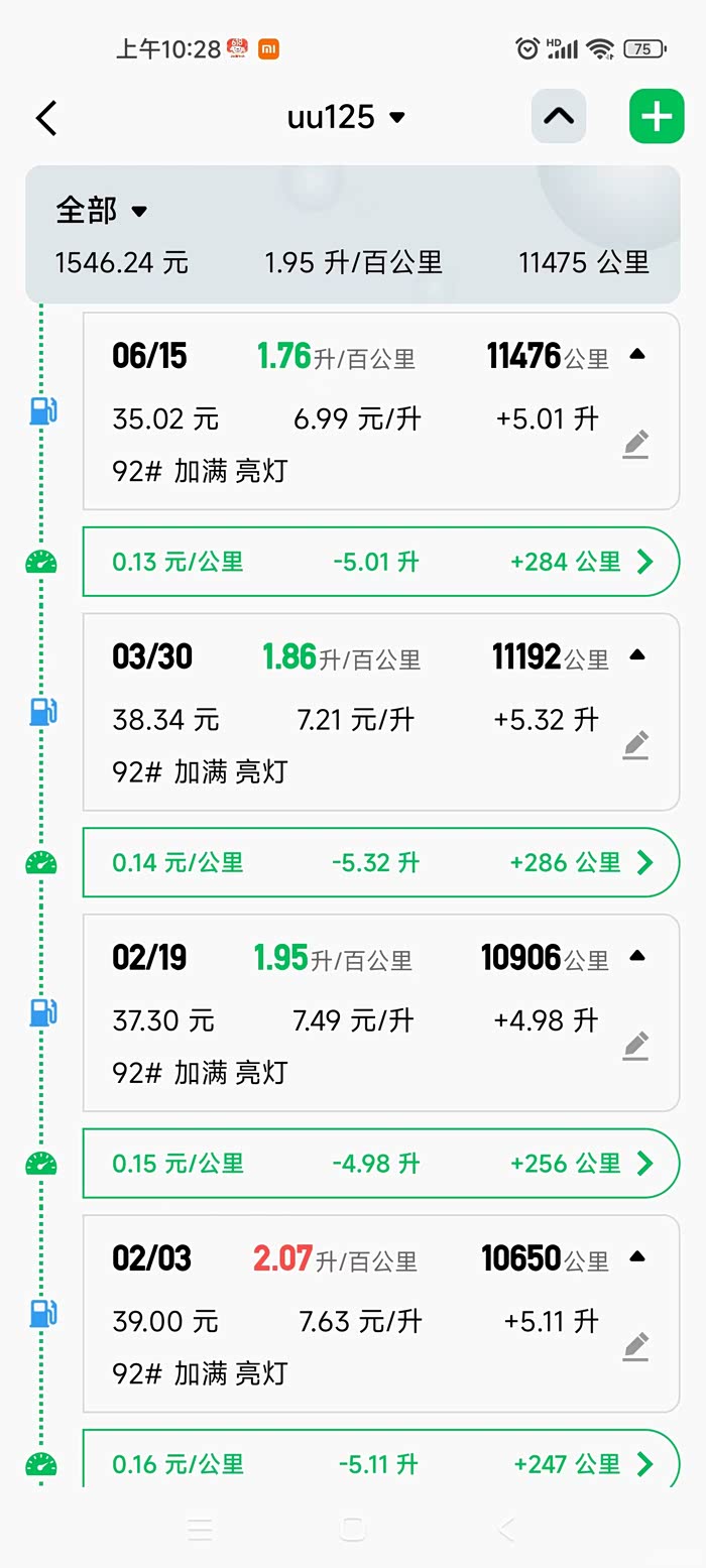 差不多,我的UU125除了首保和二保在摩托店换了机油,后来就买了各种40油,美孚FS0W-40、黑嘉0-40、欧壳HX8 5W-40、喷火六脚狗10W-40和5W-40,机油粘度有高有低,夏季建议用高粘度的40油,冬季气温低就用0W-40的。目前平均油耗1.9,冬季在2个左右,夏季在1.8左右。支大撑加满油能跑280KM,油耗还是不错的,我基本是一个人骑,小县城道路,周末偶尔跑个100KM的小长途。