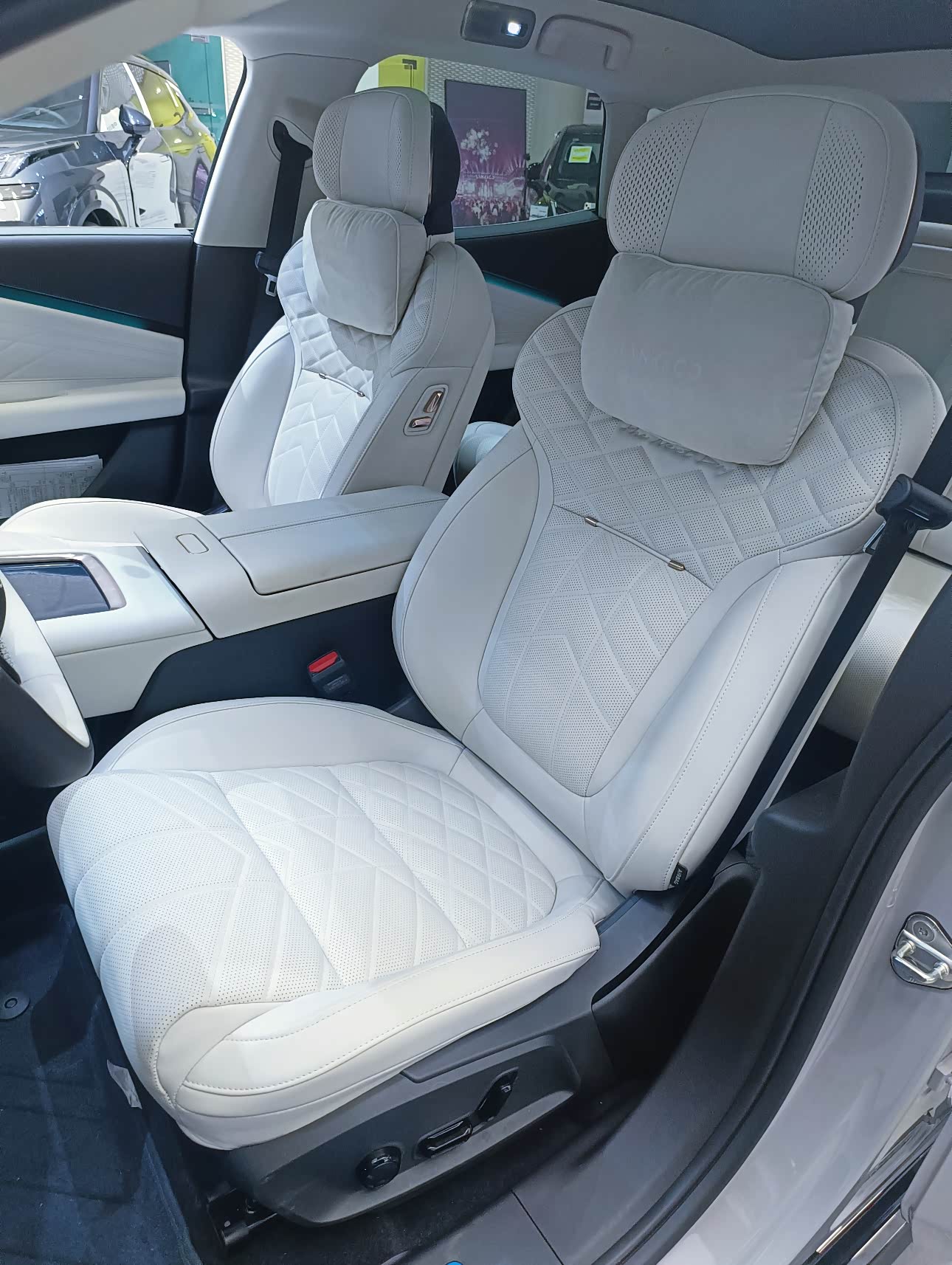 进入车内,领克Z10 EMP的舒适配置让人眼前一亮。全车座椅采用Nappa真皮材质包覆,质感柔软细腻,座椅的支撑性和包裹性都非常出色,长时间驾驶也不易感到疲劳。前排主副驾驶座椅配备了超大腿托、通风、加热跟按摩功能,后排座椅同样提供了通风、加热以及按摩功能,在休息时开启按摩功能,仿佛置身于移动的按摩椅上,惬意无比。