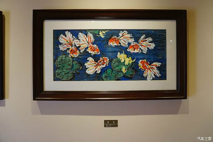 进入第一展厅,右侧墙壁是金黄色的艺术造型。