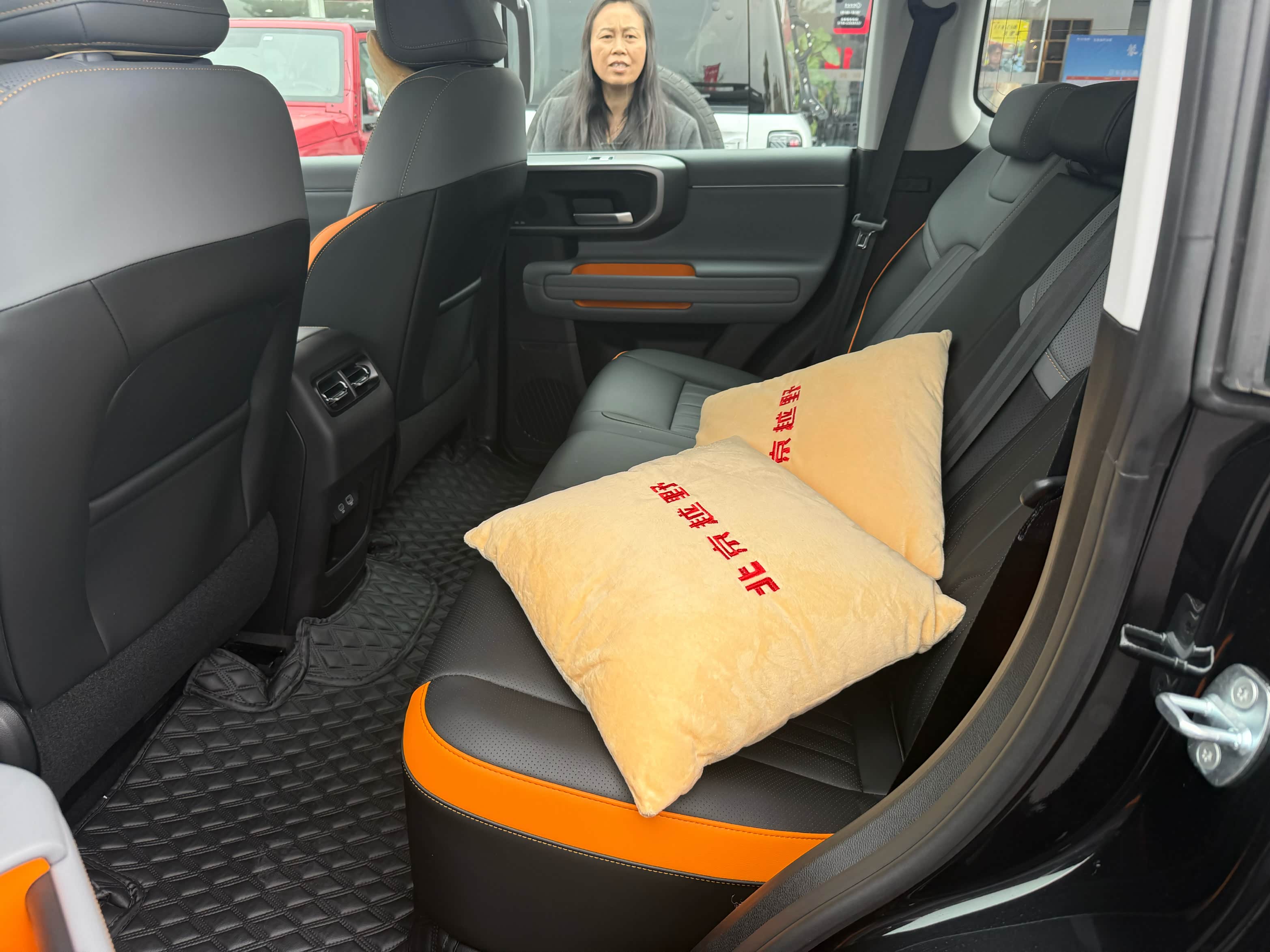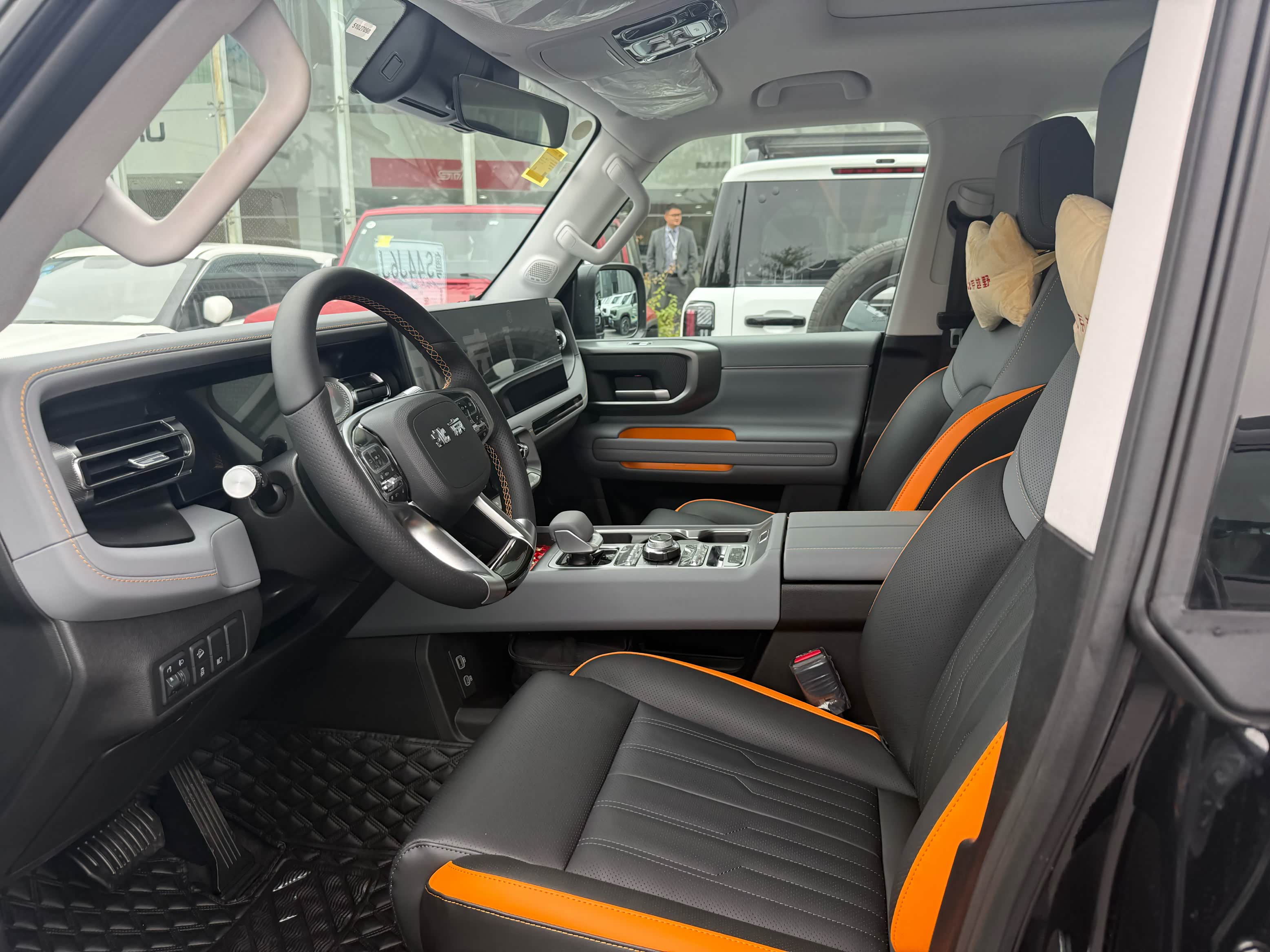 ? 舒适性配置贴心:前排座椅带12向电动调节+加热/通风/腰托功能,长途越野3小时腰不酸、屁股不闷;双温区自动空调+后排空调出风口,兼顾前后排乘客体验;车内配备50W无线快充、后排Type-C接口,满足全家充电需求,燕飞利仕音响加持,日常通勤、越野时听音乐,音质远超同价位车型。