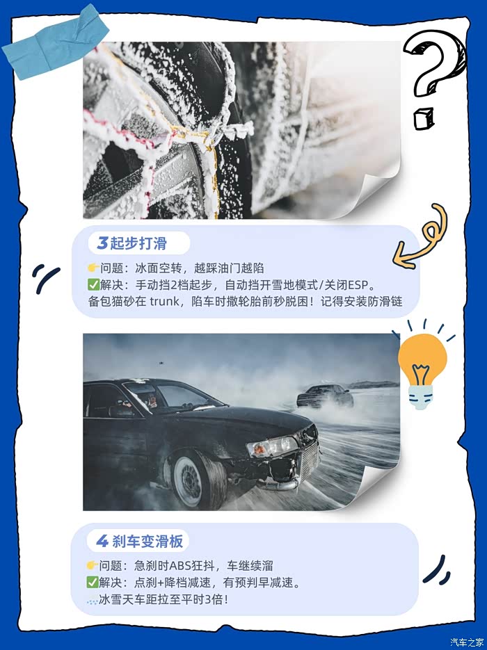 解决:点刹+降档减速,有预判早减速。 冰雪天车距拉至平时3倍!
