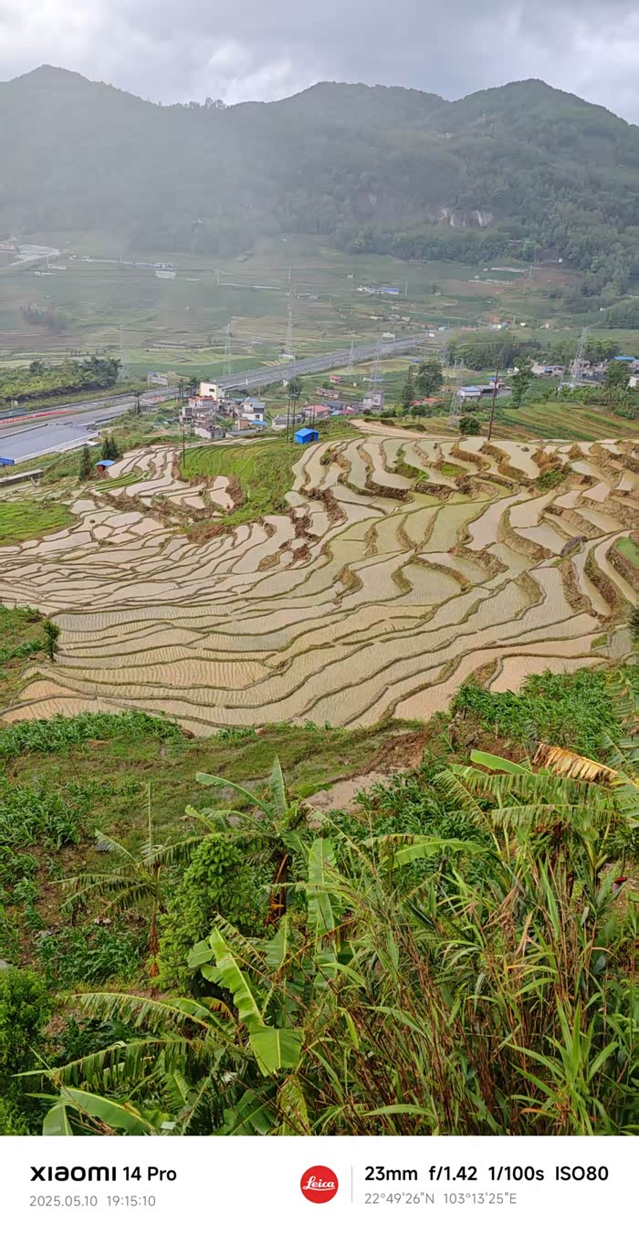 5/13第十一天:江城-十层大山-版纳。今天阴天,先去十层大山看中老越三国界碑。跟着导航开了几十公里被拦住,调头回来从另一条路前往。上山的路基本是单车道,不过多数已经硬化,也没有什么车。下山时间还早,直接前往西双版纳。