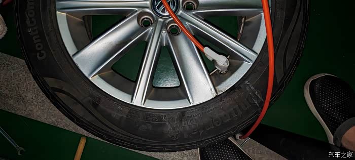 这里有点难度,轮胎边很难越过传感器,搞点肥皂润滑,松掉千斤顶,强行拌回去恢复轮胎,顺利复原,难点又来了,一般会遇到轮胎边与轮毂不闭合,一般手动打气筒很难充上气,但今天狗屎运气爆棚,一次性成功!惊喜!!